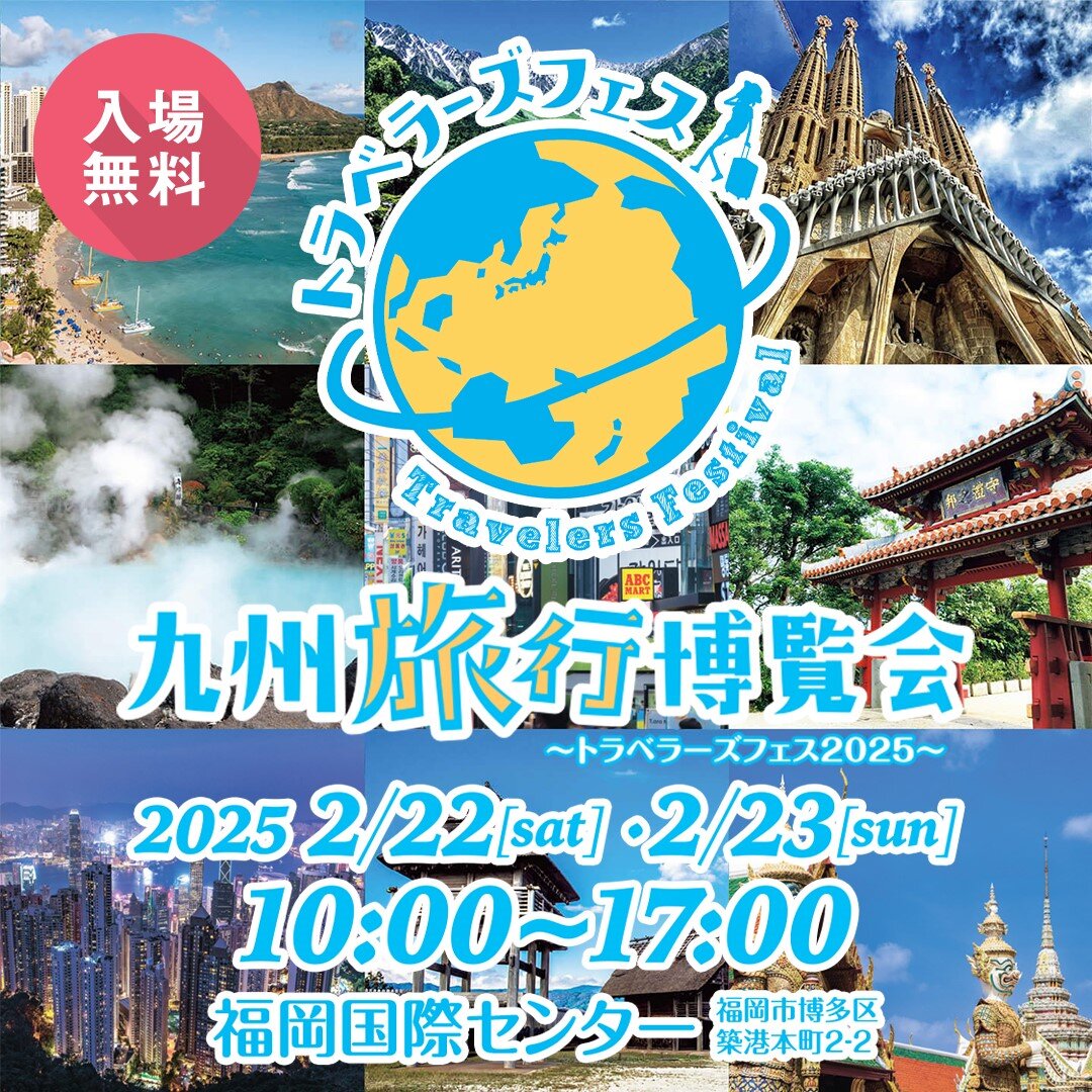 The Kyushu Travel Fair - Travelers Fest 2025, an event that provides information on domestic and international travel, will be held at the Fukuoka International Center on both Saturday, February 22nd and Sunday, February 23rd, 2025. The venue will feature around 100 booths introducing tourism information from Japan and abroad, as well as stage events, experience-based events for children, food and drink booths, and much more!