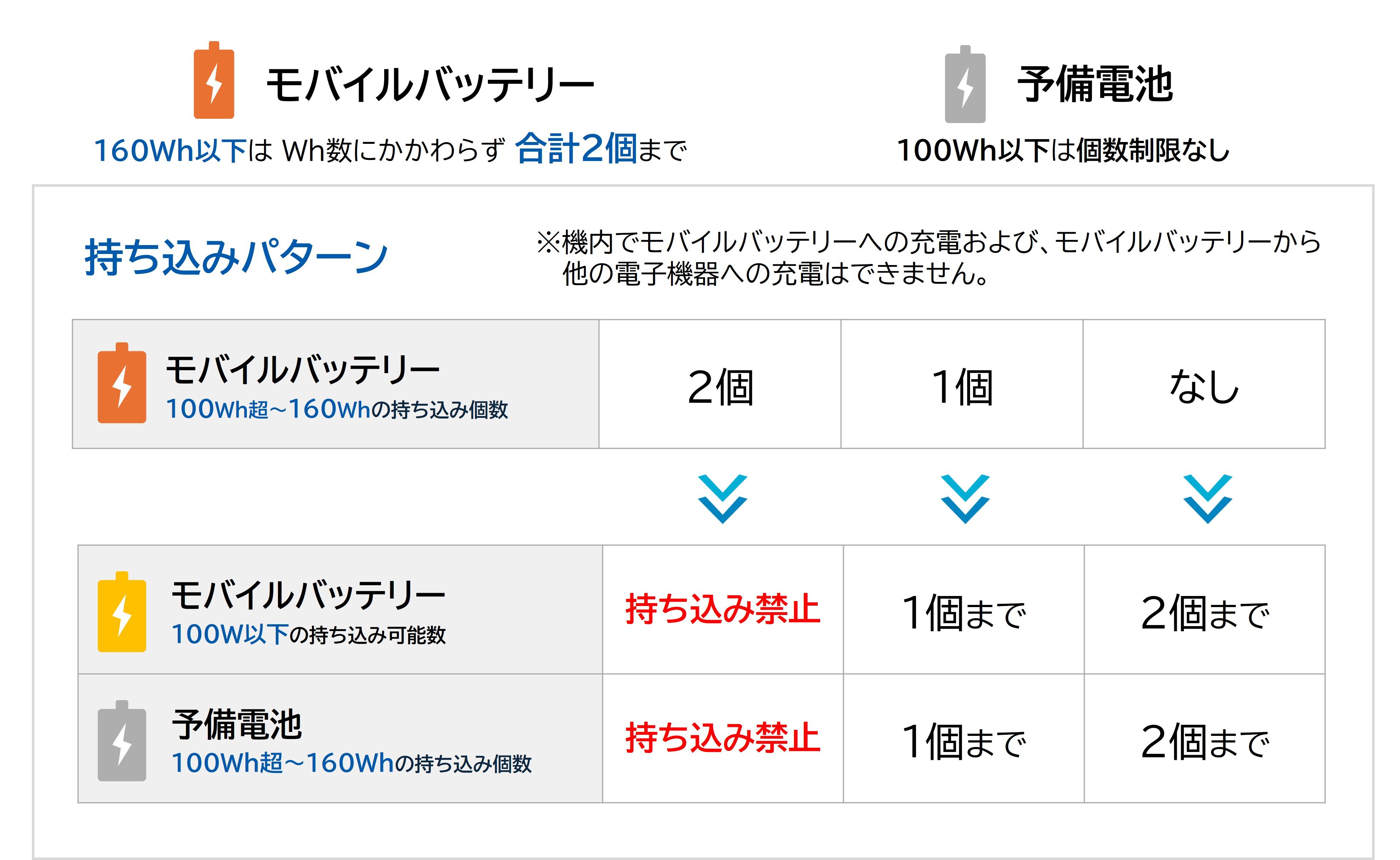 - モバイルバッテリーはお預け入れ手荷物として承ることができません。