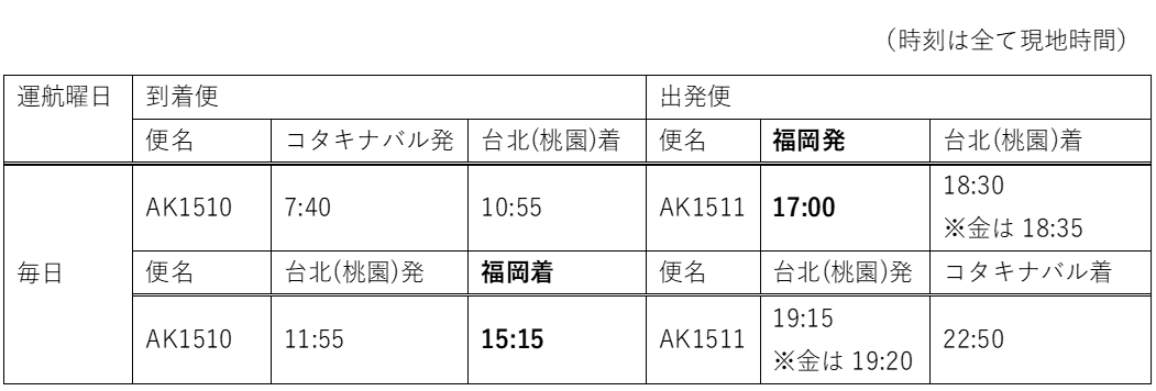 エアアジア・マレーシアがコタキナバル線(台北経由)に就航します(国際線) 8/15(金)~