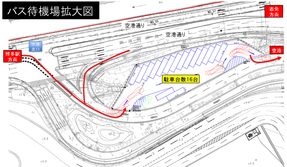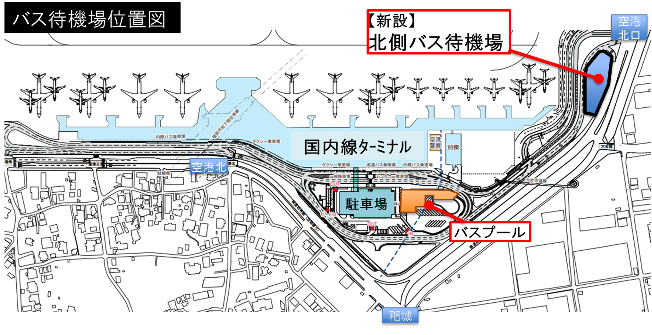 乗車の場合は、必ず北側バス待機場に入場のうえ、乗車30分前になりましたらバスプールへ移動してください。