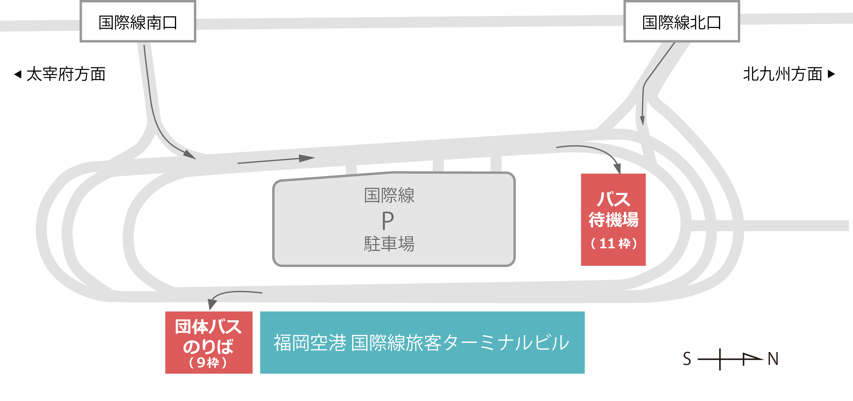 - 3F出発フロア道路や構内道路での待機、乗車はできません。