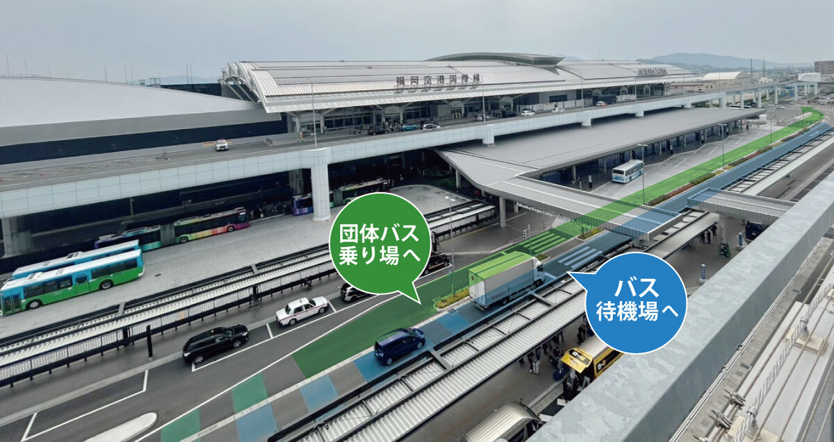 福岡空港国際線における【 団体バス乗り場 】および【 バス待機場 】のご利用方法についてご案内いたします。
