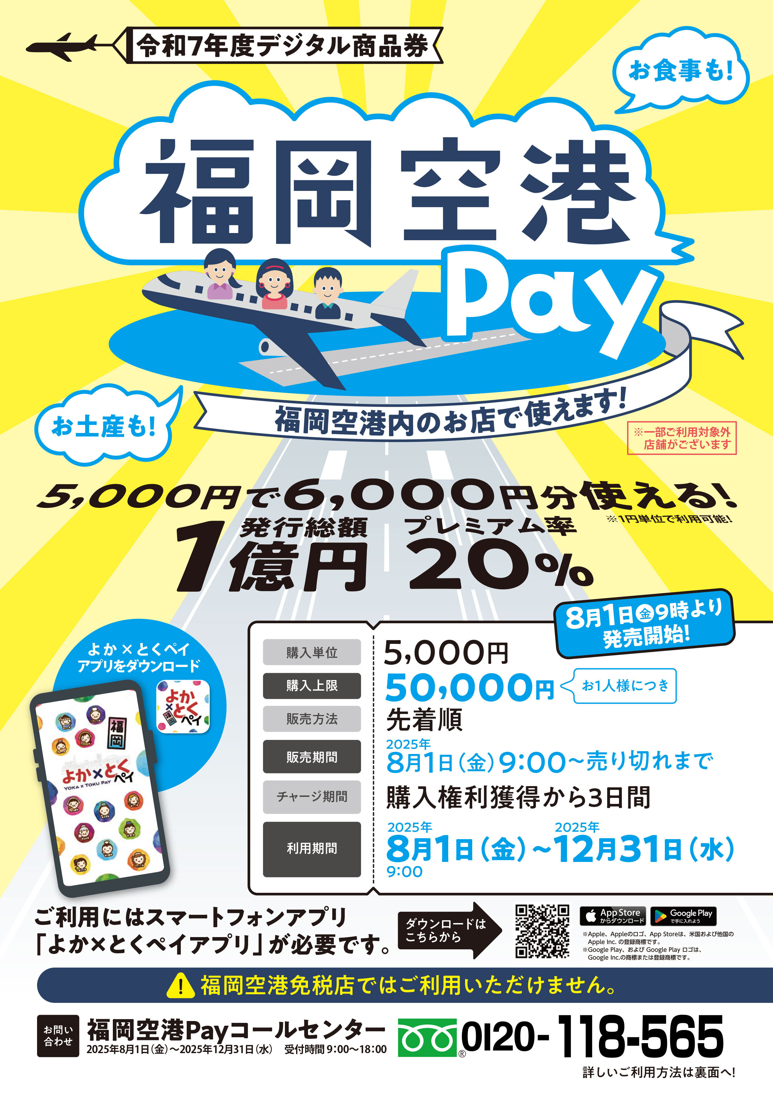 福岡空港プレミアム電子商品券「福岡空港Pay」を販売します! 8/1(金)~
