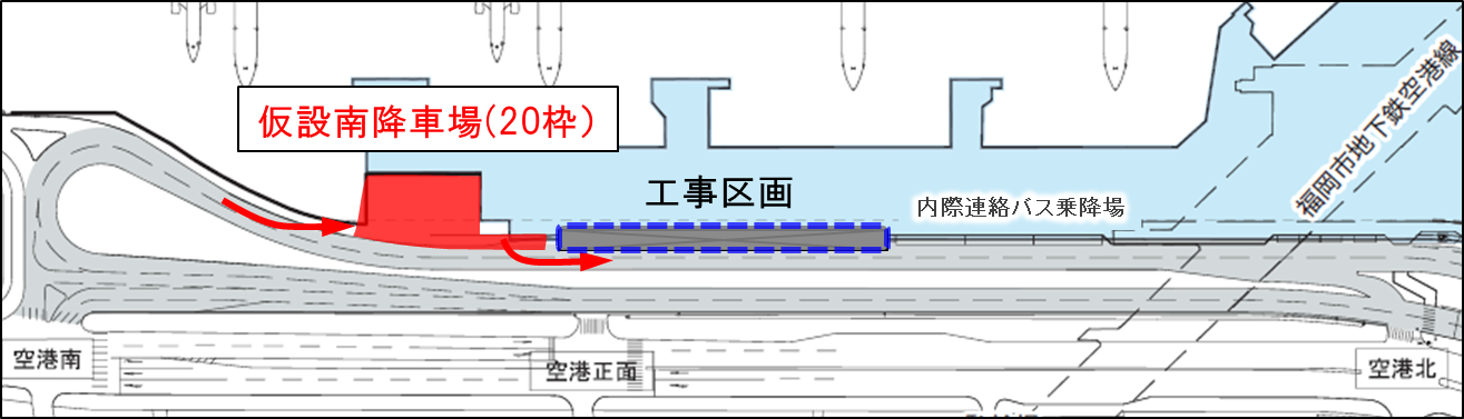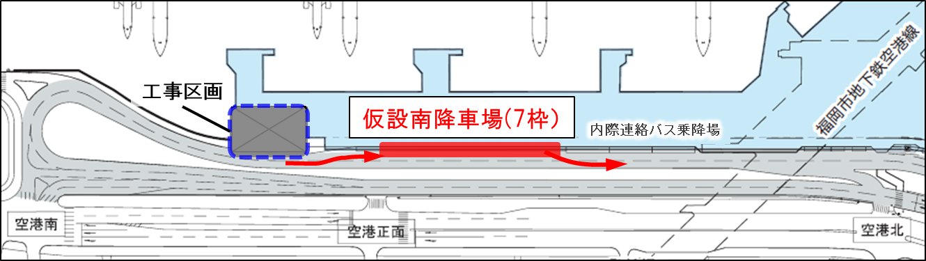 国内線南乗降場整備工事に伴い、2023年11月15日(水)17:00から、現行の南降車場の位置が段階的に切り替わります。