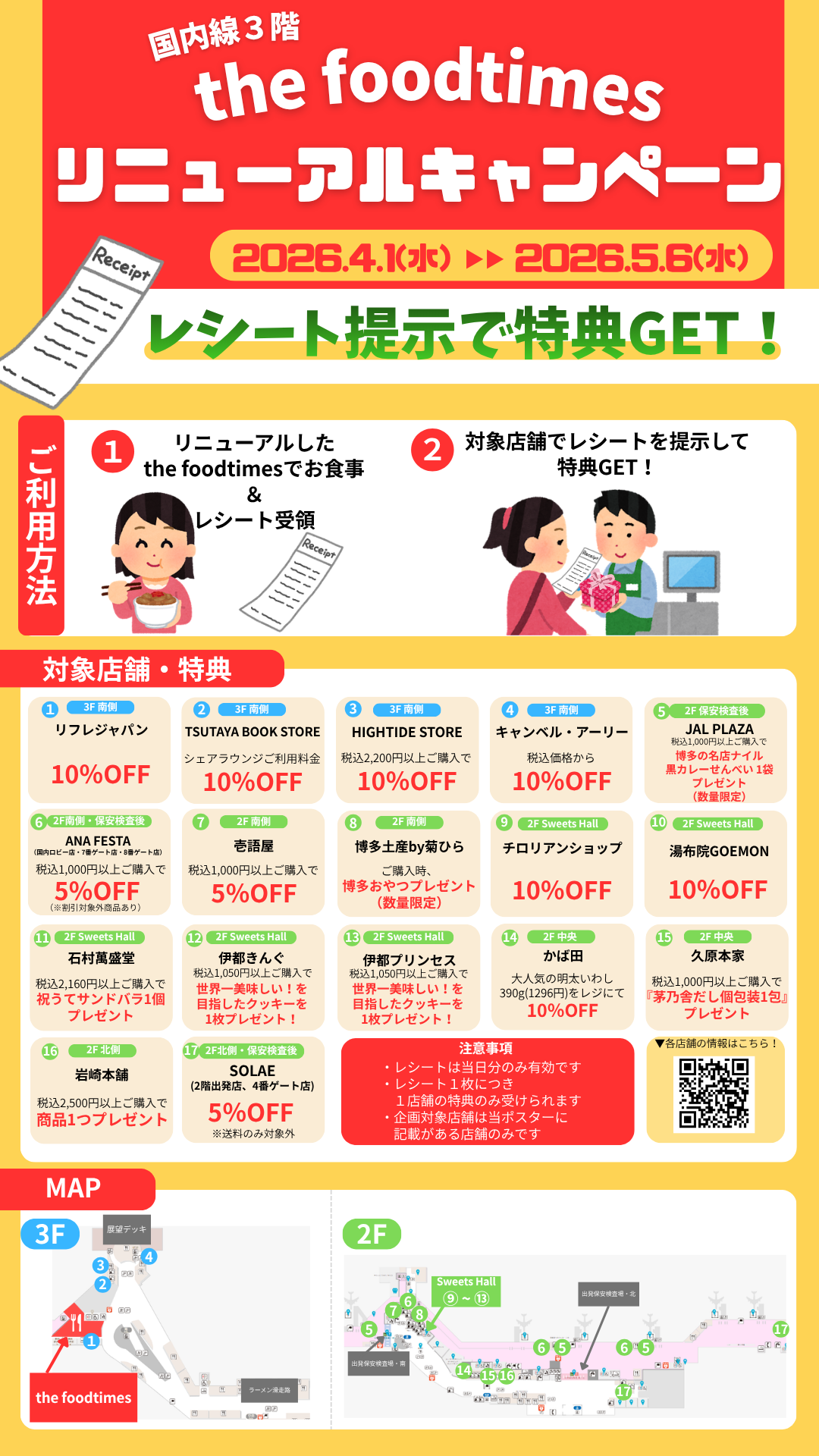 2026年4月1日に福岡空港国内線のthe foodtimesが3階にリニューアルオープンすることを記念して、お得なキャンペーンを実施いたします!