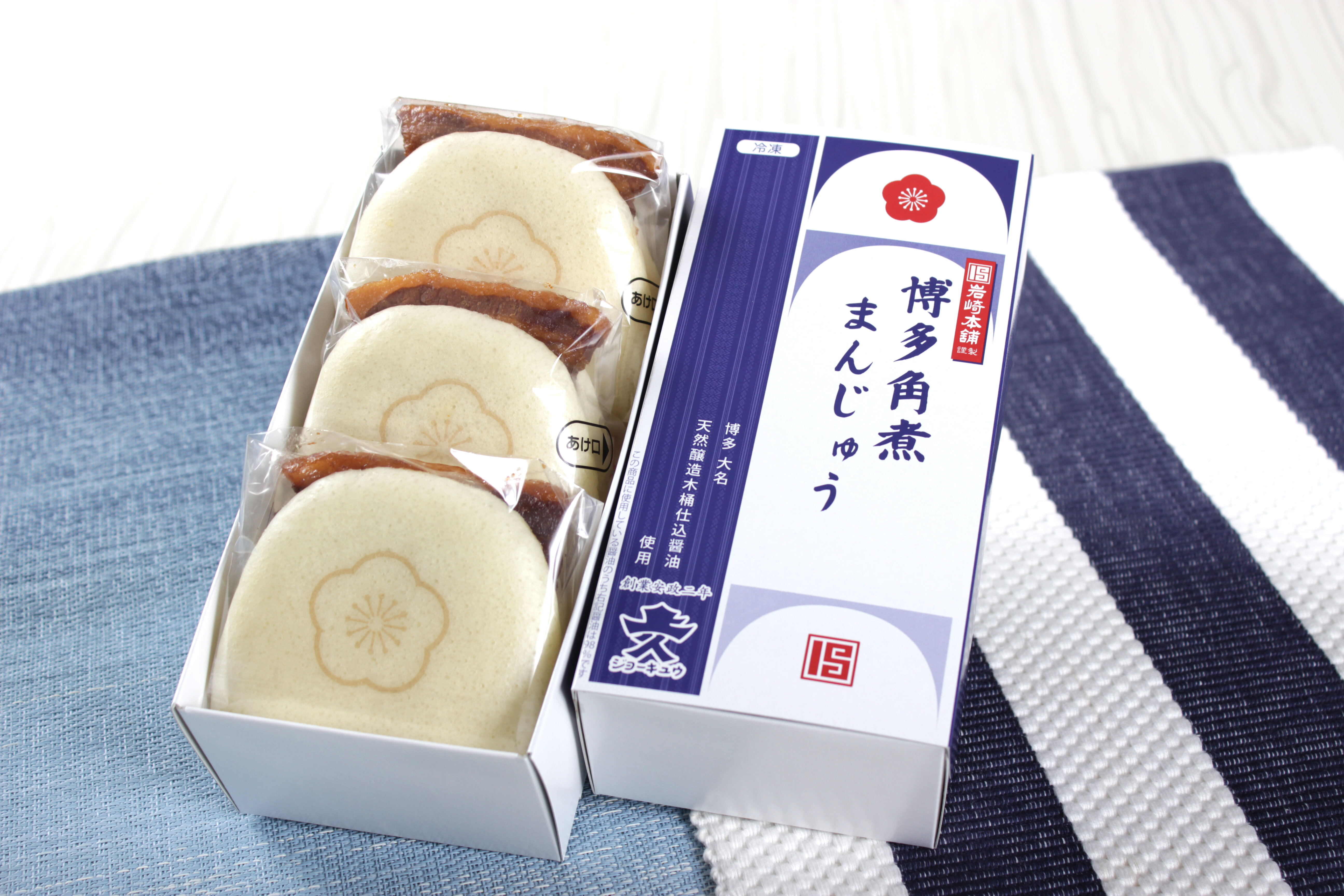 博多大名醤油を使用した濃厚な味わいと旨味を感じられる福岡限定「博多角煮まんじゅう」。福岡の県花である「梅」が焼印。福岡土産の新定番です。