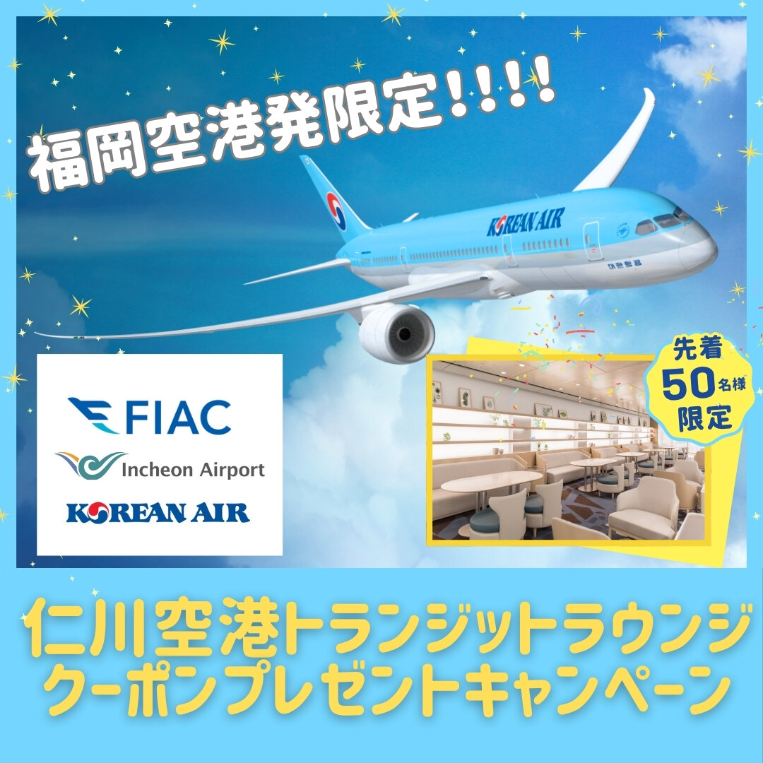 福岡機場正在進行一項活動,向從福岡機場國際航站樓登上大韓航空、在仁川機場轉機、然後再次轉機前往第三國的前50 名乘客贈送仁川機場中轉休息室優惠券!