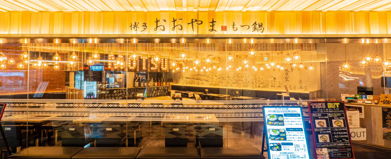 裝潢開揚明亮,氣氛熱鬧的屋台風餐廳!牛腸鍋專門店"博多牛腸鍋大山"的特色是,只採用產自鹿兒島的嚴選黑牛小腸,再以九州味噌等幾種不同味噌調配,製作出濃郁美味的牛腸鍋。
