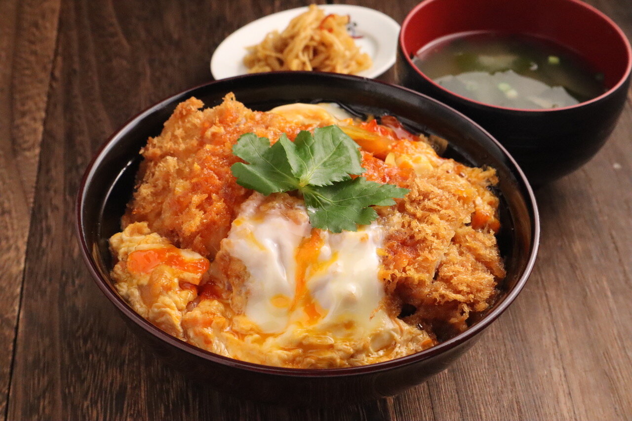 使用嚴選國產豬肉製成的豬排、豬排丼,以及使用自家工廠調配的咖哩製成的炸豬排咖哩飯。