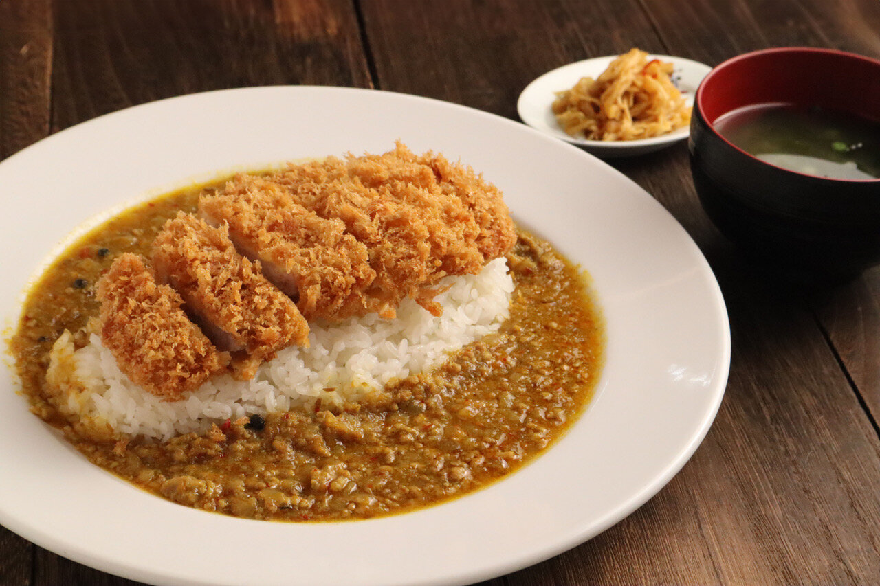 使用自家工廠調配的咖哩製成的炸豬排咖哩飯。