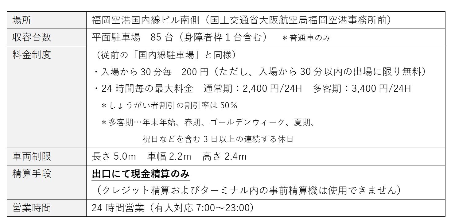 关于福冈机场“国内线南停车场”的启用