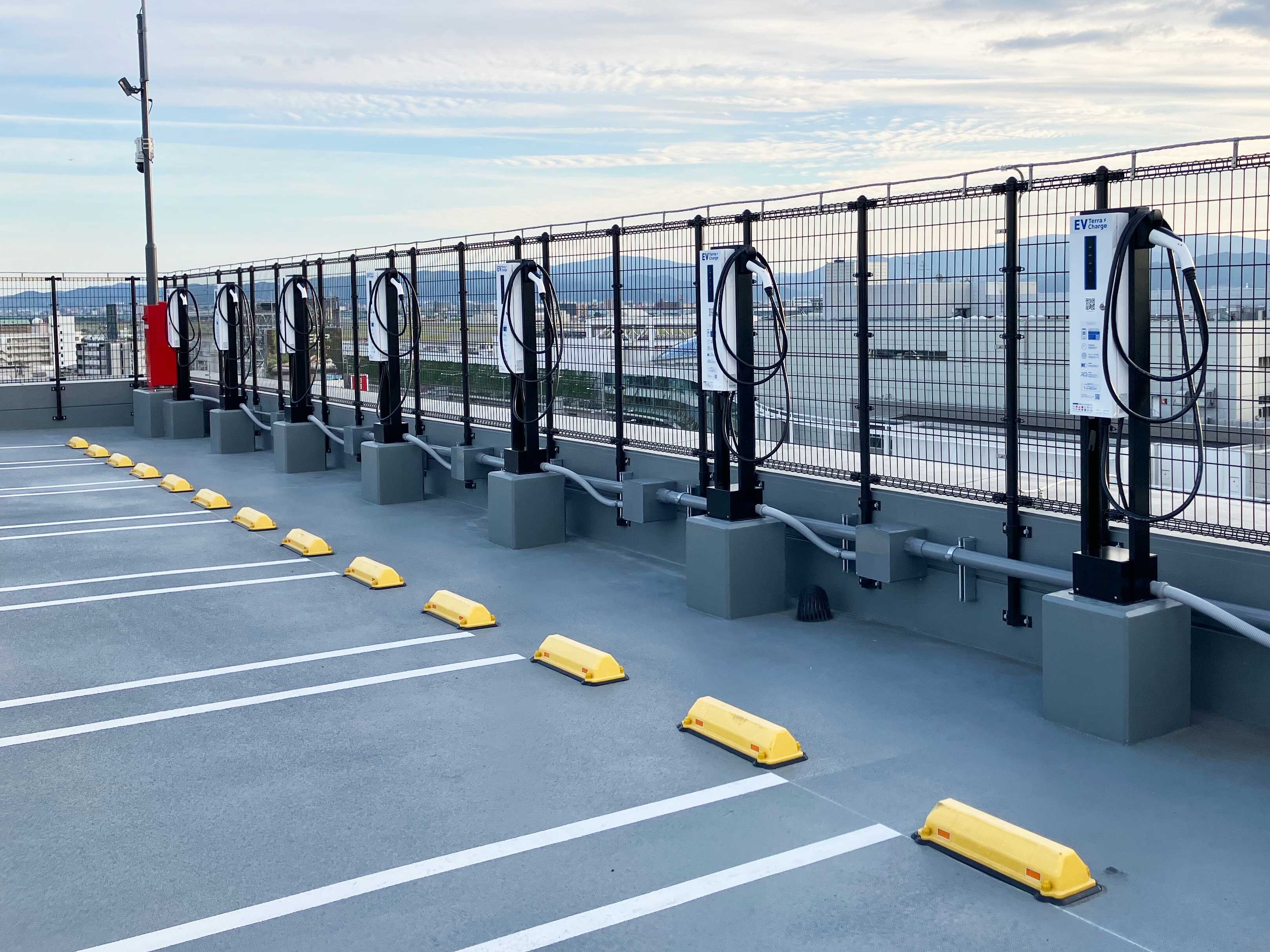 这里设有电动汽车用普通充电设备。下载专用app或读取设备上的二维码后开始使用。